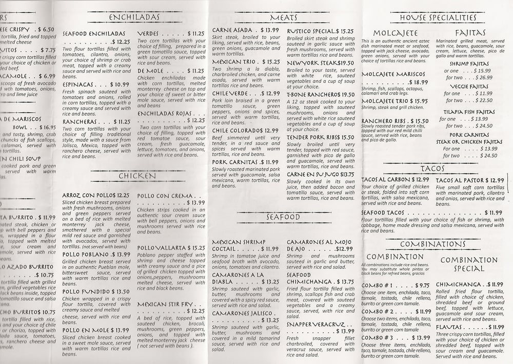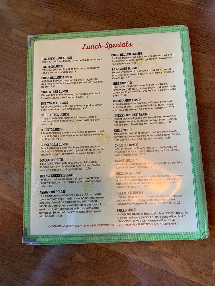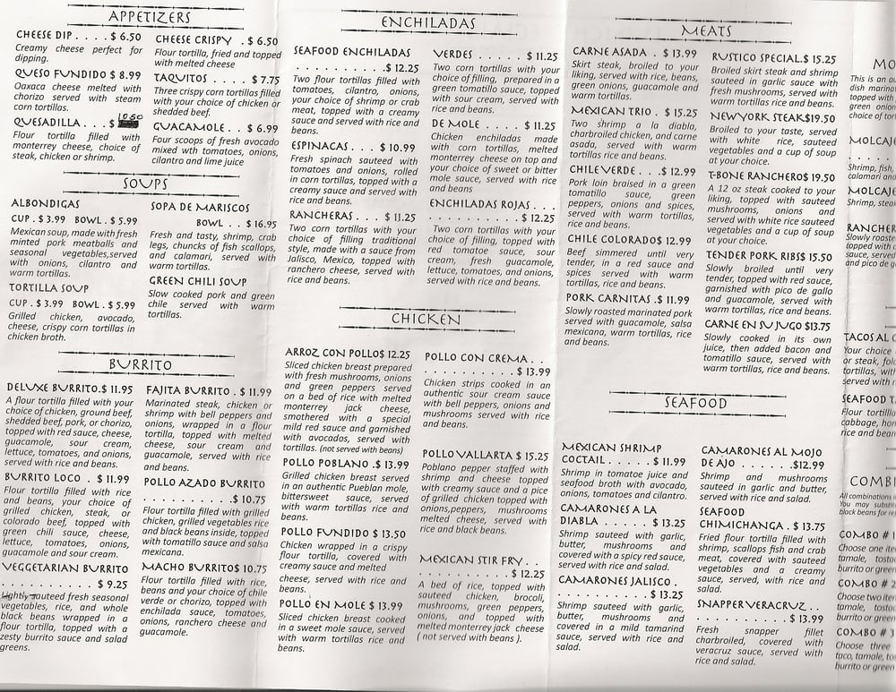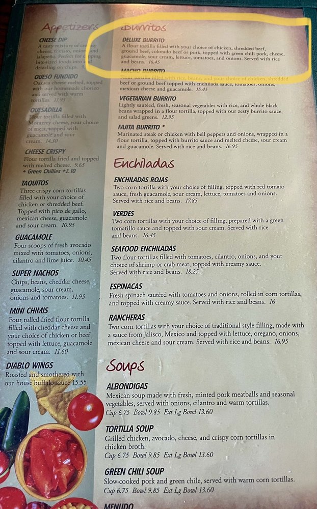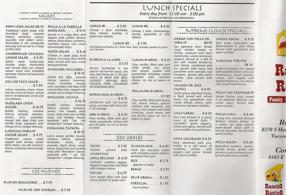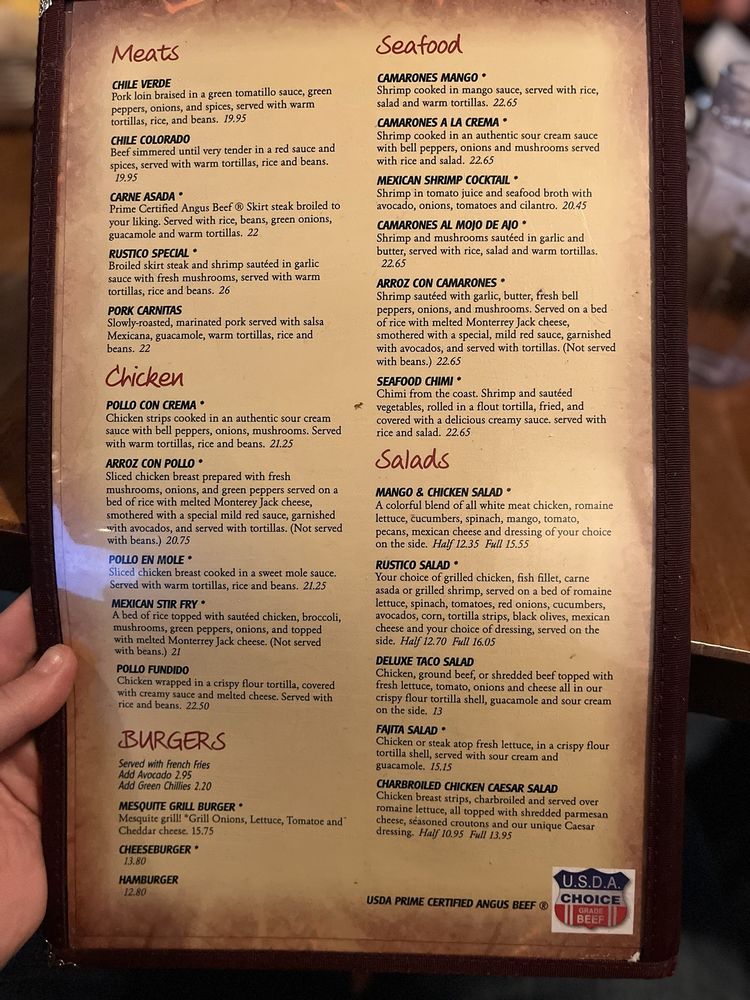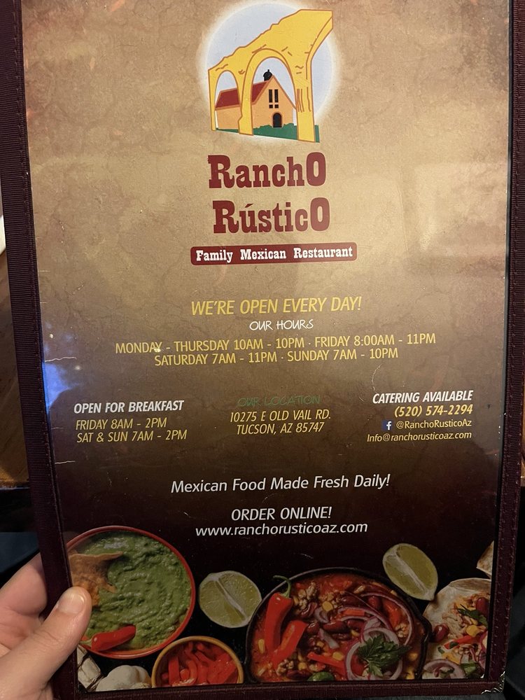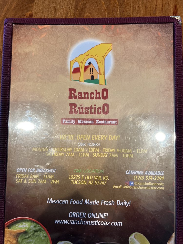 Rancho Rustico Restaurant Menu